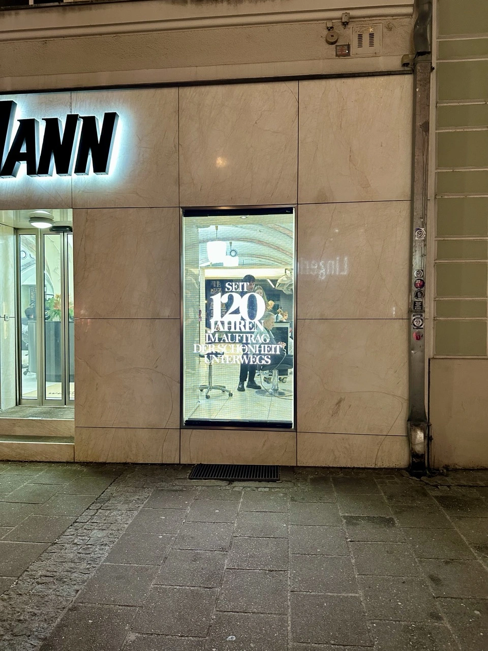 Zum 100-jährigen Jubiläum hat sich der bekannteste Friseursalon der Linzer Innenstadt selbst ein Geschenk gemacht, das weit über klassische Werbung hinausgeht: eine digitale Innovation, die Schaufenstergestaltung völlig neu denkt. Ein maßgefertigtes transparentes LED-Mesh, das sich unsichtbar in die Glasfassade integriert und dennoch maximale Aufmerksamkeit erzeugt.