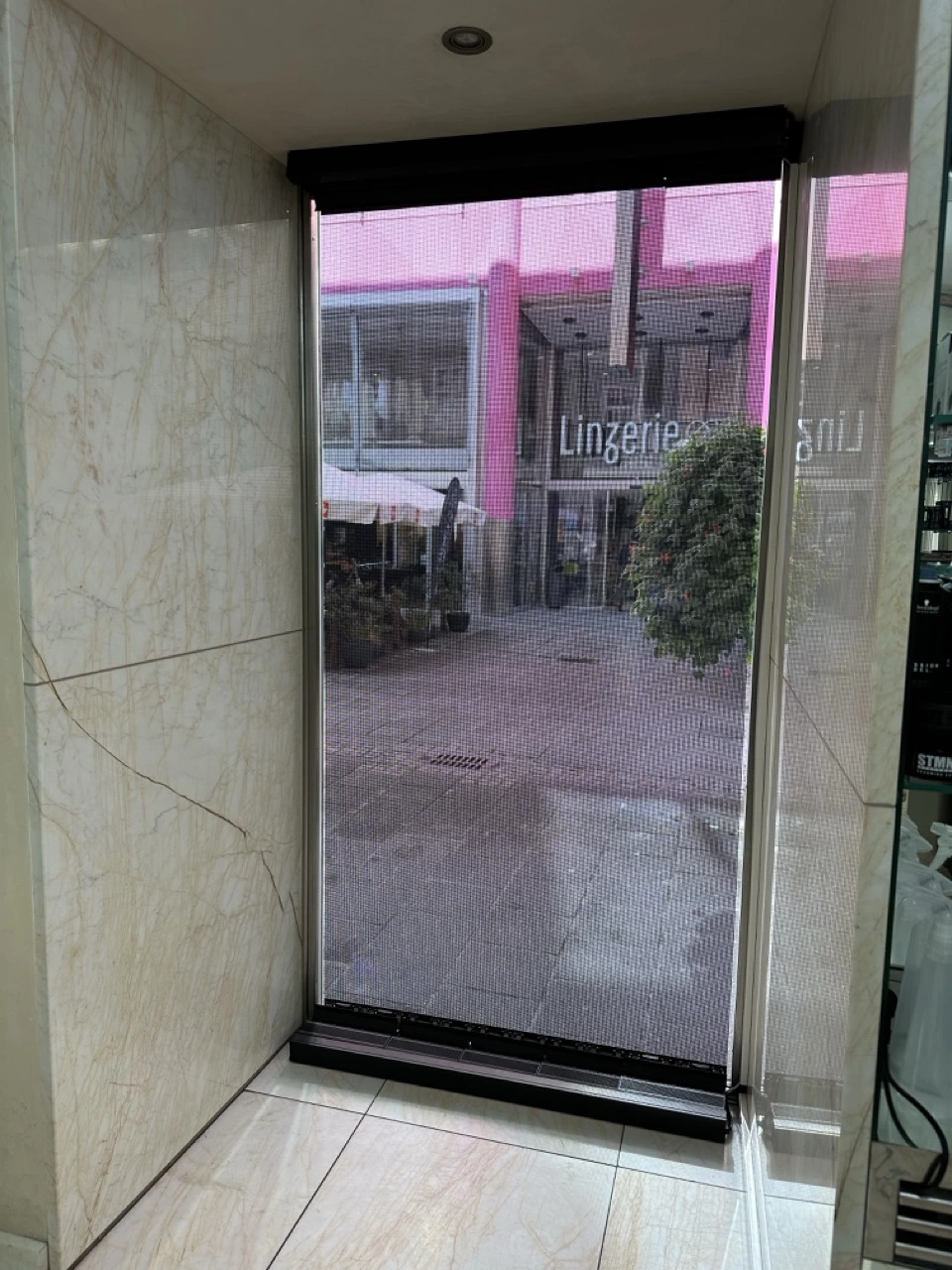 Marco Inmann wollte sein renommiertes Geschäft an einem der prominentesten Plätze der Linzer Fußgängerzone modern inszenieren. Die Lösung sollte elegant, nicht aufdringlich und architektonisch stimmig sein. Ein Screen durfte nicht wie ein Fremdkörper wirken – vielmehr sollte er das Schaufenster aufwerten, ohne die Sicht nach innen zu blockieren.